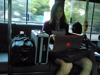 there's lyds in the bus, guarding both the camera and sound kit.